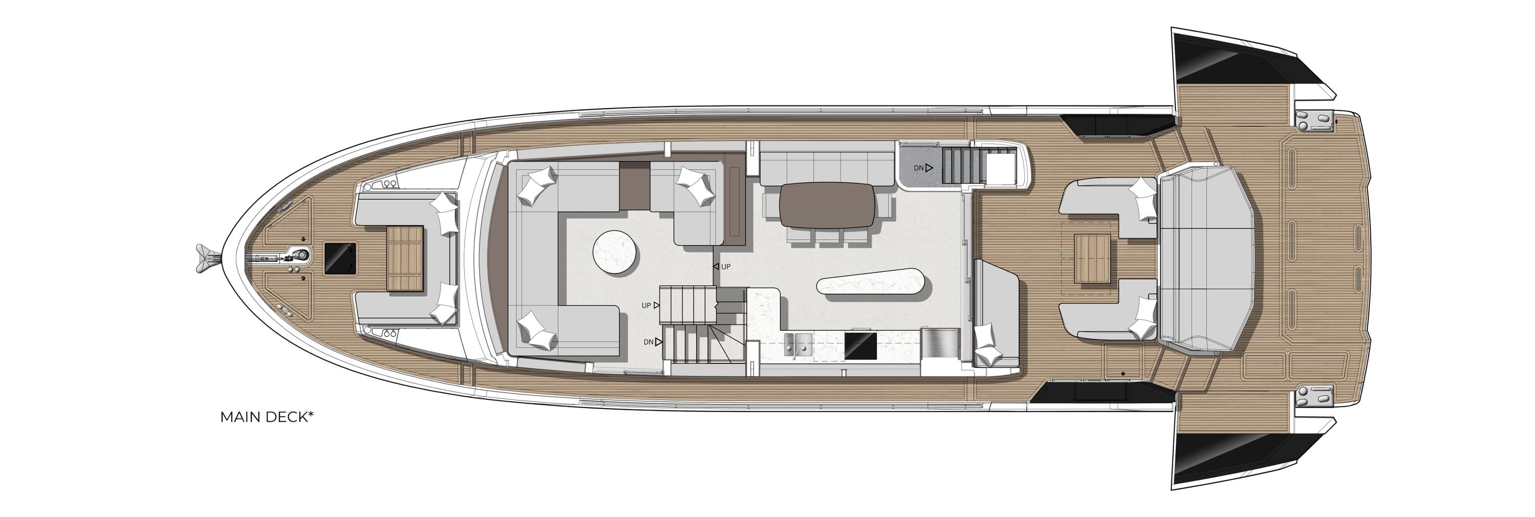 An extended forward deck crowns the yacht with panoramic views and abundant seating for drinks and relaxation. The flat deck layout offers owners complete flexibility to personalise the space to suit every occasion, from intimate family meals to stylish gatherings. Foredeck seating offers the perfect retreat for owners to enjoy a morning coffee, away from guests and social spaces.